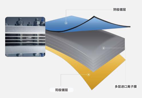 采用SPE纯水电解槽通过质子交换膜将氢气和氧气完全隔离,使机器内部不会产生氢氧混合气体。